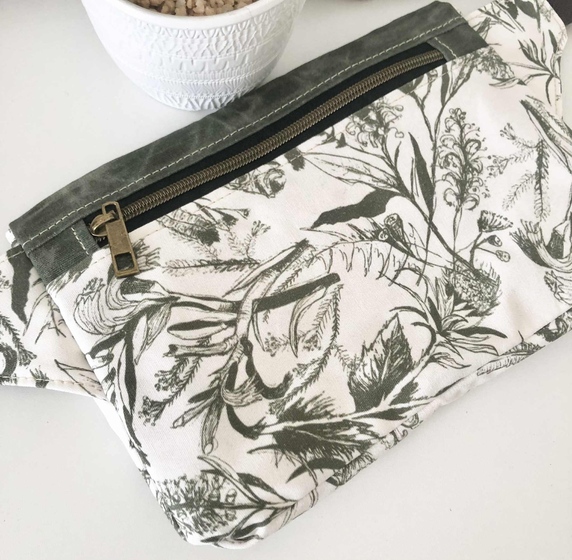 Belt Bag with Bush Blooms and Green Waxed Canvas