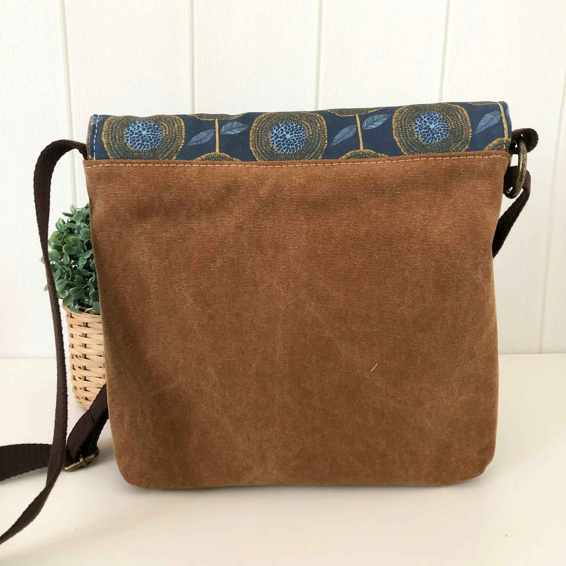 Cassinia Crossbody Bag - Tan Canvas and Brown Leather with Modern Floral